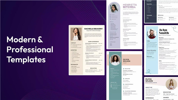 With over 20 professionally designed resume templates and 15 color and font combinations to choose from, My Resume Builder provides more than 300 customizable resume designs. Our templates are crafted to align perfectly with international standards and industry-specific requirements, and are accepted everywhere, whether you're in India, the United States, Europe, or other countries.