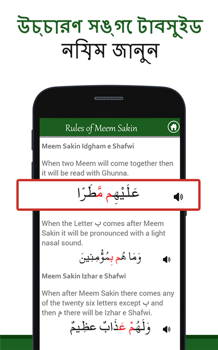• Learn Tajweed: Master the rules of proper recitation through structured lessons that cover everything from basic phonetics to advanced pronunciation techniques.