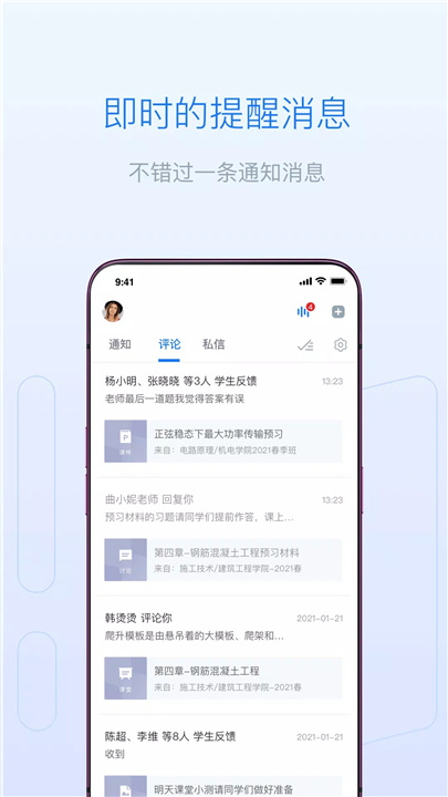 它拥有灵活多变的课前学习模式,雨课堂下载凭借非常多样性的教学资源可轻松嵌入到幻灯片之中,从而极大地方便了学生在手机上进行观看及学习。另外,雨课堂还具备快速便捷的课上课下测验功能。通过一键操作就能将融入到PPT中的习题发送给学生,实现随时随地的讲解与测试。
