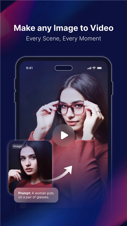 • Image to Video: Upload a single photo and watch it come alive with smooth animation, cinematic camera movements, and engaging visual storytelling.