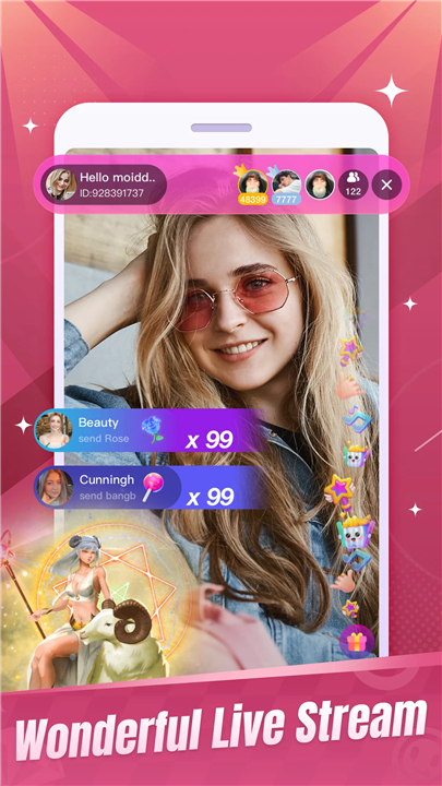 • Express yourself with special virtual gifts and dazzling entrance effects.