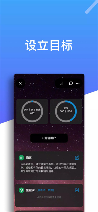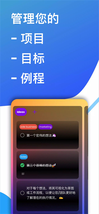 [项目跟踪器和目标经理]的目标管理功能非常强大,允许用户设置和跟踪个人和职业目标。您可以为每个目标创建里程碑、任务和注释,随时查看进度并完成目标。