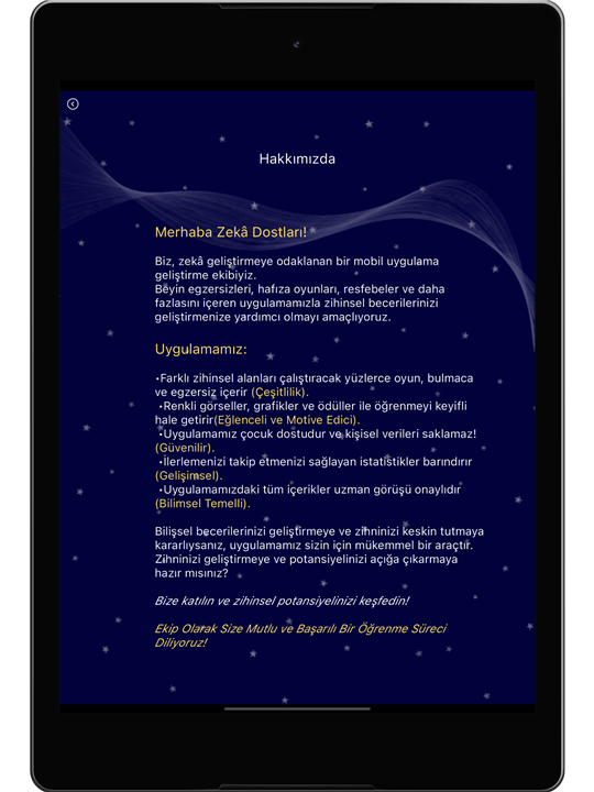 • Zeka Gemisi is a user-friendly, free mobile application designed to support and enhance the cognitive development of students from various age groups.