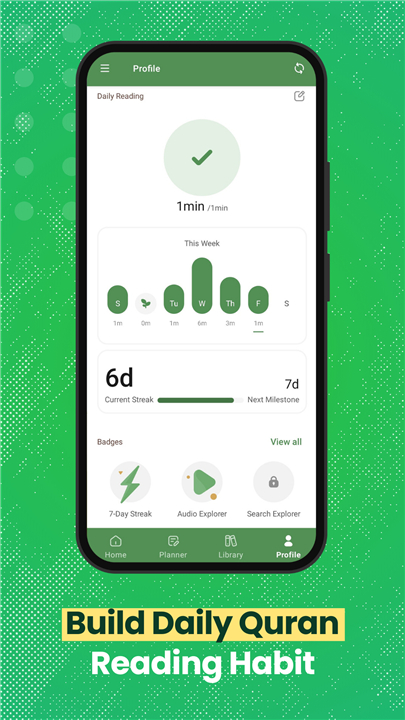 • Set a Quran reading goal and track your Khatmah progress with the interactive planner.