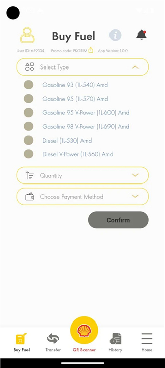 • Enables customers to select fuel type and quantity directly through the app.
