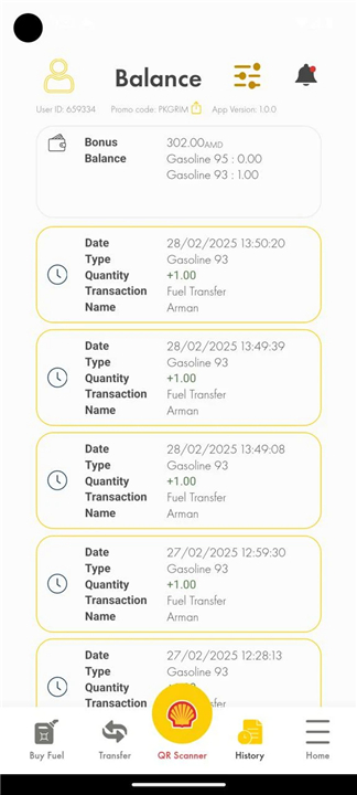 • Lets customers transfer purchased fuel credits to friends, family, or colleagues through the app.