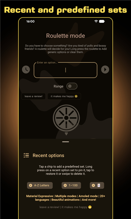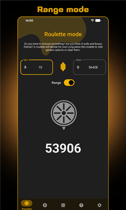The roulette remembers the last range/options and mode