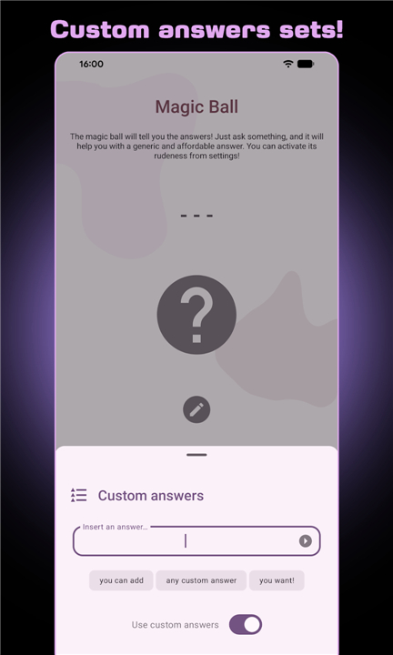 - New custom answers support for the magic ball