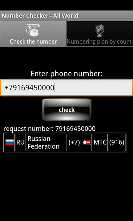 Check the telephone number to identify the country, city, mobile operator. Download the latest version of Number Checker. Phone tracer to enjoy new features and updates immediately!