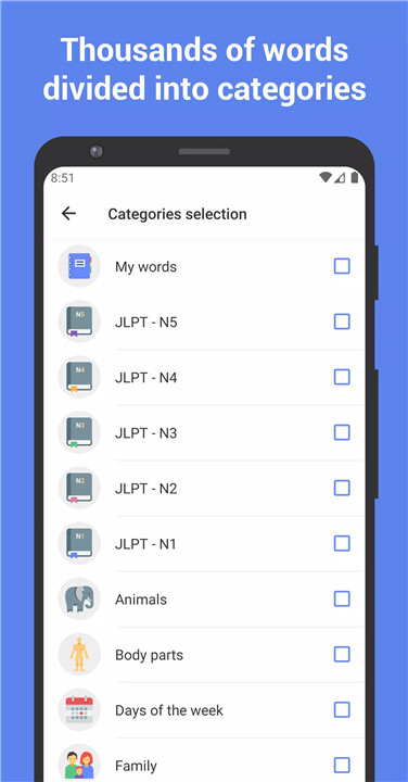 Learn Japanese JLPT vocabulary provides a comprehensive collection of Japanese words and phrases organized into thematic categories. Join the discussion topics that interest you the most and effortlessly switch between categories to tailor your learning experience.