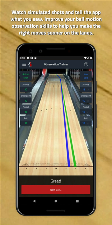 • Observation Trainer – Improve your ability to read ball motion with realistic lane simulations.