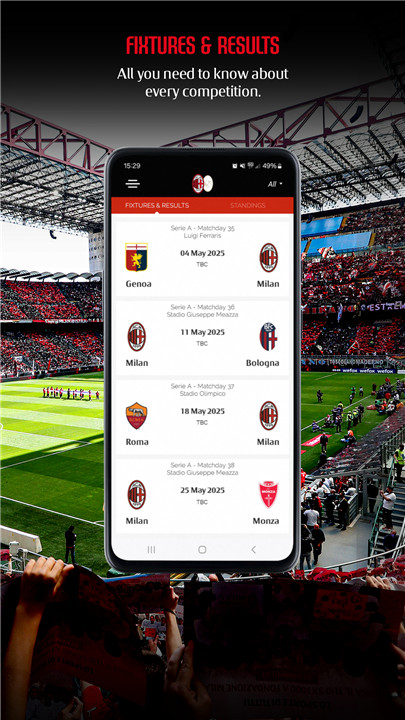 - Secure your seats and join fellow fans at the iconic San Siro by purchasing your AC Milan tickets directly through the app.