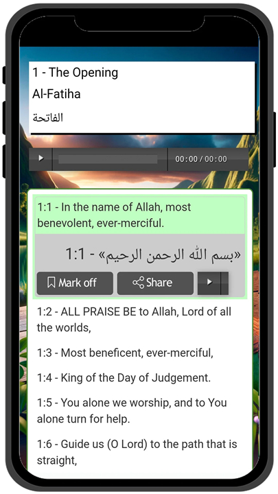 • Pre-loaded playlists for easy listening and memorization (Hifz).