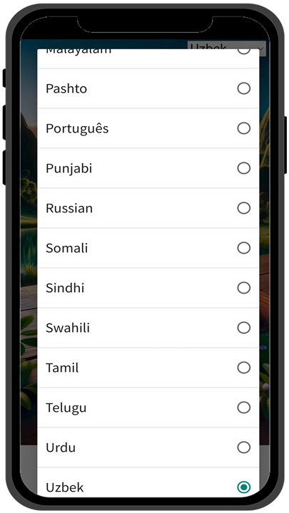 - Portuguese, Punjabi (Panjabi), Russian, Somali, Sindhi, Swahili, Telugu, Urdu, Uzbek