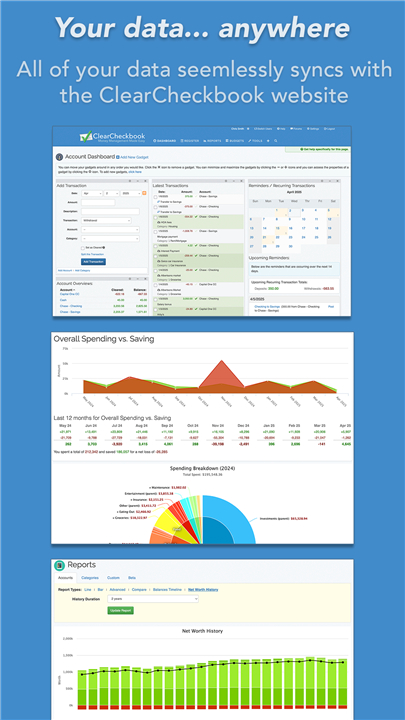 • By integrating directly with ClearCheckbook.com, all your financial data is automatically synced across multiple devices, including smartphones, tablets, and computers.