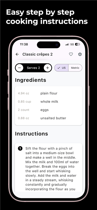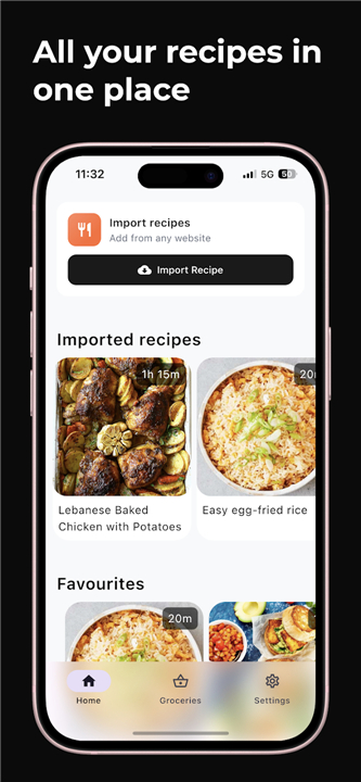• Our smart technology detects ingredients, steps, and nutrition facts, neatly filing them away in your personal, beautifully designed digital cookbook.