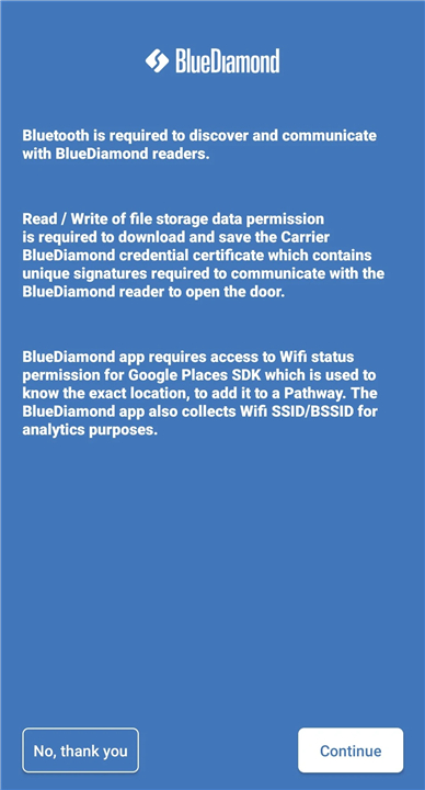 BlueDiamond offers a complete, next-generation access control experience. Download the latest version of BlueDiamond™ Mobile to enjoy new features and updates immediately!