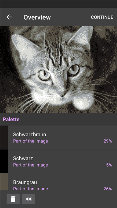 + Users can effortlessly transform any personal photograph or digital image stored on their device into a workable crochet, knit, or cross-stitch pattern.