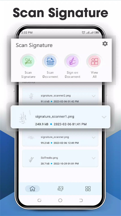 这款应用可以帮助您将手写签名快速扫描并转化为数字格式,便于随时随地进行使用。操作非常简单,您只需要准备一张白纸,手写下您的签名,然后通过应用的扫描功能将签名拍摄下来。