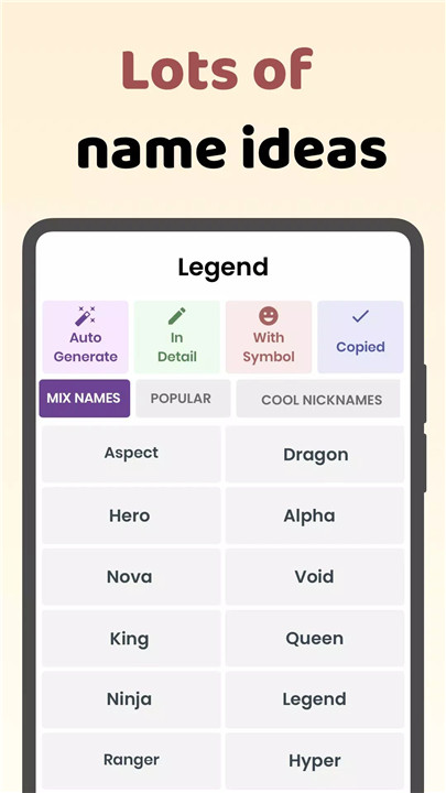 Name Style: Nickname Generator is your ultimate tool for crafting distinctive and stylish nicknames for games and social media! Effortlessly generate cool and creative nicknames that are perfect for any platform. Enjoy the ease of creating memorable names that fit your personality and style, all for free!