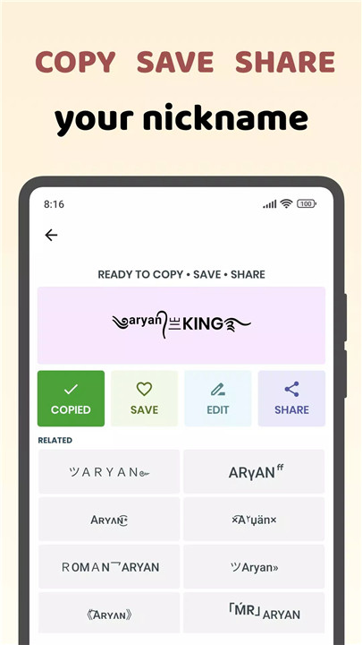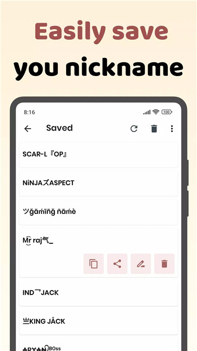 All your favorite nicknames can be saved and accessed easily from the SAVED page, making it simple to revisit and choose the perfect name whenever you need.