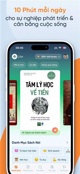 Fonos boasts a collection of over 1,000 copyrighted audiobooks, including titles like The Alchemist, Sapiens, and Romance of the Three Kingdoms. With contributions from celebrated authors such as Thich Nhat Hanh, Osho, Yuval Noah Harari, and many more, you can enjoy both local and international literary gems in high-quality audio format.