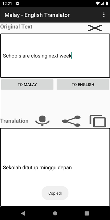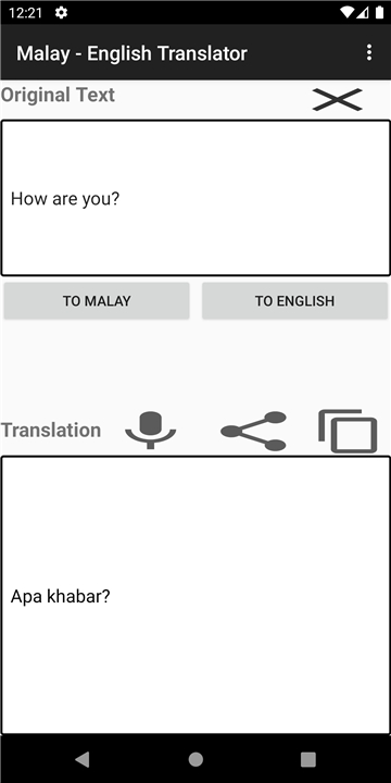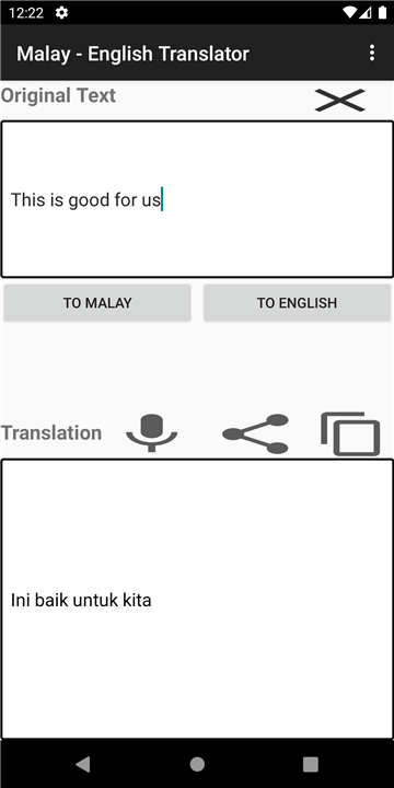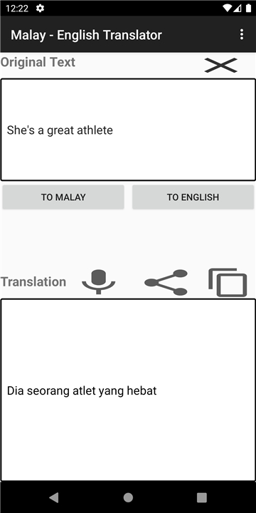 Translate any word/sentence from English/any language to Malay Download the latest version of Malay - English Translator to enjoy new features and updates immediately!