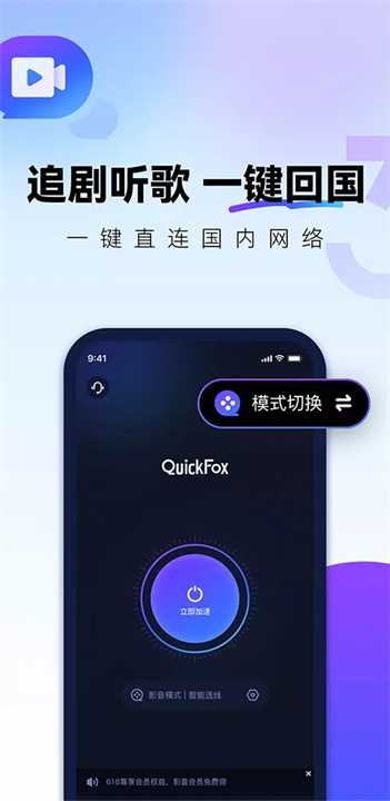 QuickFox加速器,让你轻松畅享国内网络,告别延迟与卡顿!专为海外华人、留学生和出差用户设计,一键回国加速,快速访问国内应用与网站,无论是追剧、听歌、游戏,还是办公、炒股,都能轻松应对。支持全球各地加速,安全加密保障隐私,快速稳定,全球用户都在用。