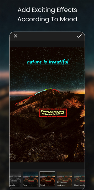 • Apply a wide range of artistic filters that instantly enhance your photos.