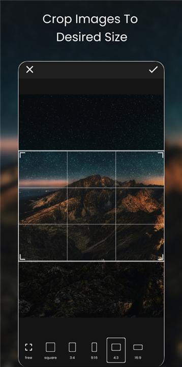 • The cropping tool offers presets for popular social media formats as well as freeform cropping for unlimited creativity.