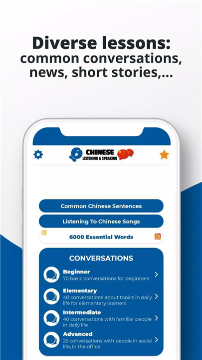 - You can access over 750 lessons on common Chinese conversations in daily life, complete with audio recordings by native speakers.