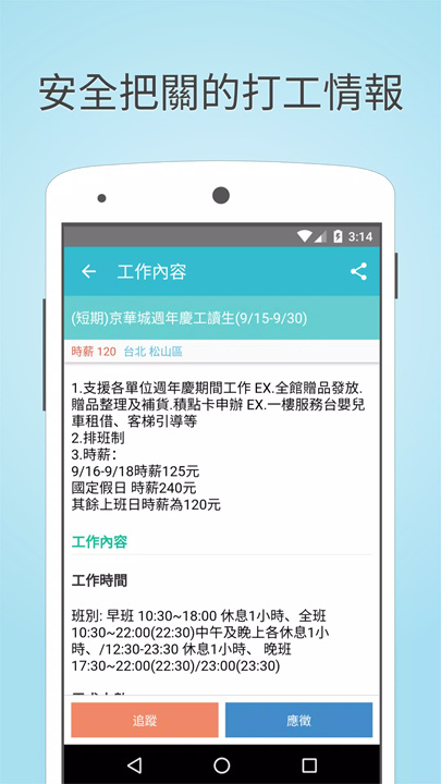 [打工趣]是一款专为寻找短期、兼职或长期工作的用户设计的App,提供即时的工作资讯。无论是求职者还是招聘方,打工趣都能帮助用户快速找到理想的工作或合适的人选。用户操作简单,通过几步即可浏览最新的工作机会或发布招聘信息,方便快捷。打工趣,省时又高效,是台湾最受年轻人欢迎的工作资讯平台。打工人打工魂,打工都是人上人!