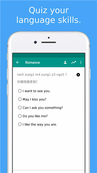 Adjust quiz and flashcard settings for Cantonese to English and vice versa.