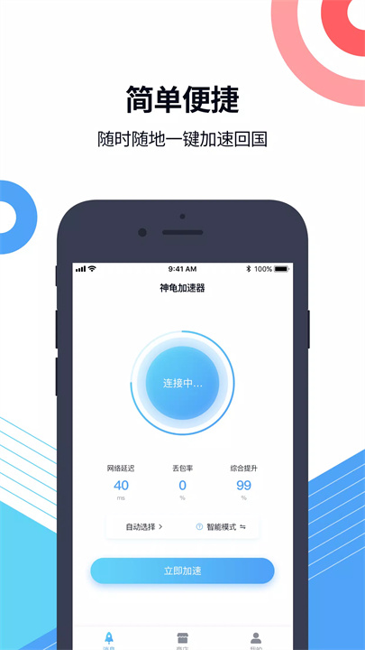 [神龟加速器]是一款专为海外华人、留学生和海外出差用户设计的VPN加速应用,旨在帮助用户解锁中国大陆的网络限制。它具备简单、安全、快速的特点,支持观看视频、直播、听音乐、玩游戏等多种功能。用户可以手动选择服务节点或自动连接高带宽、低延迟的线路,确保快速稳定的网络体验。低延迟、高速度,神龟加速器,上网冲浪更畅快。