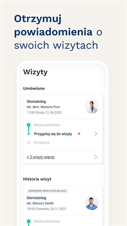 • Download the free ZnanyLekarz app, find the specialists you need, and book your appointments in just a few taps – no matter where you are.