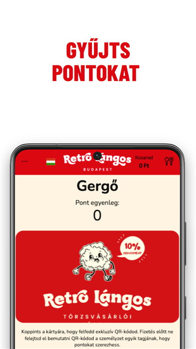 • Every Retro Lángos app purchase is a step towards greater rewards.