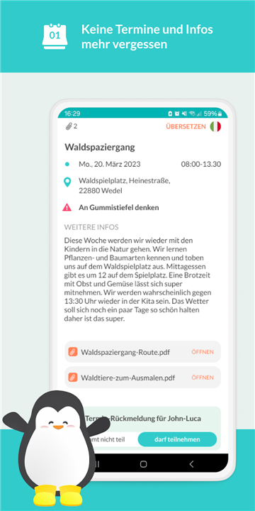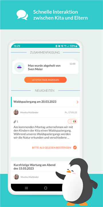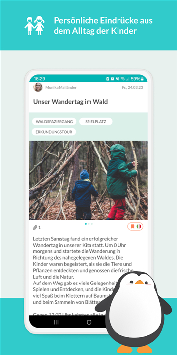 • Shared Moments: Enjoy a curated stream of photos and vivid impressions from your child's daily activities, fostering a strong connection to their learning and play.