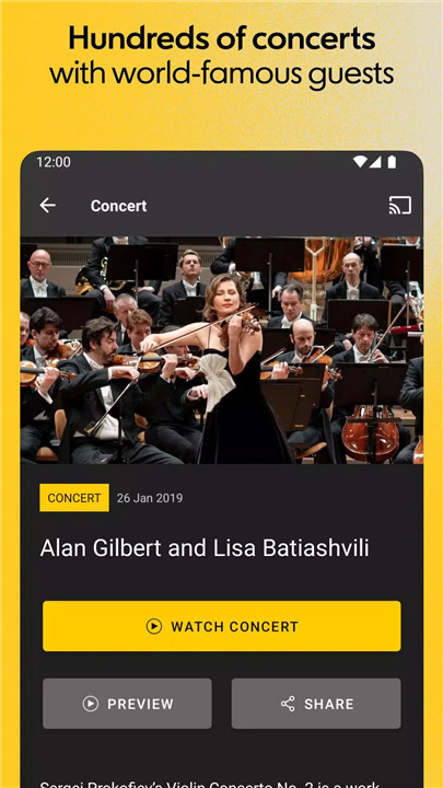 Experience performances in stunning 4K UHD video with Hi-Res audio and immersive Dolby Atmos sound. The Digital Concert Hall ensures the highest quality viewing and listening experience possible.
