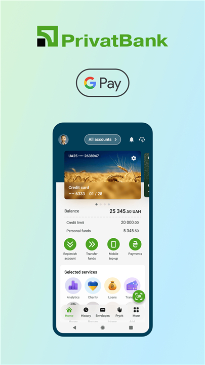 • Experience seamless online banking with Privat24. Manage payments, money transfers, loans, utilities, and mobile top-ups—all within the app.