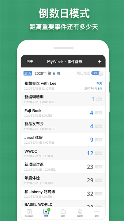 “事件备忘提醒” 功能就像是一个可靠的小秘书,例如和客户开会、购买生日礼物,还是还信用卡等重要事项,都能通过倒数日备忘清晰地呈现在我们眼前。