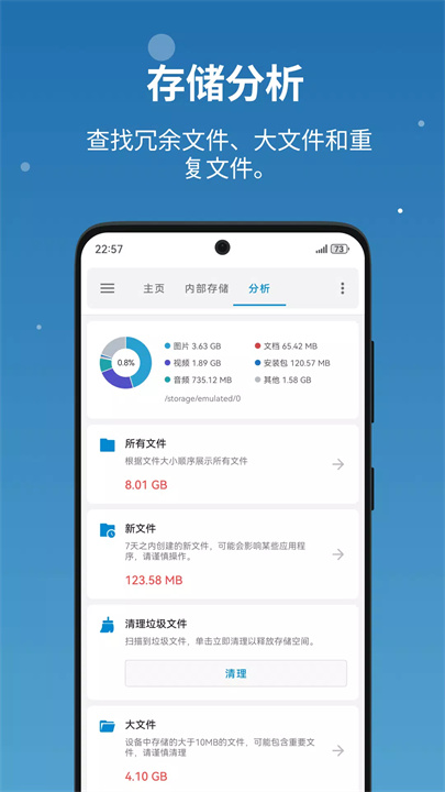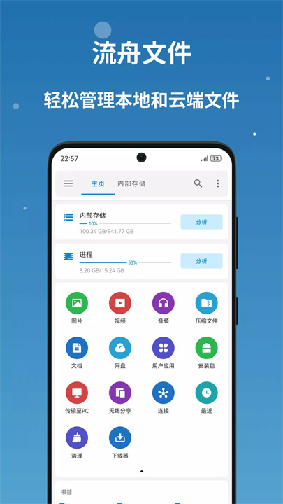 [流舟文件浏览器]是一款高效的文件管理工具,支持本地和云端文件管理,兼容多种存储方式,包括SMB、FTP、USB、OTG等。它不仅能够管理文件,还提供存储分析功能,帮助清理无用文件,释放手机存储空间。通过直观的操作界面,用户可以轻松完成文件的多选、剪切、复制、删除、重命名等操作,支持多标签和文件共享,提升文件管理效率。