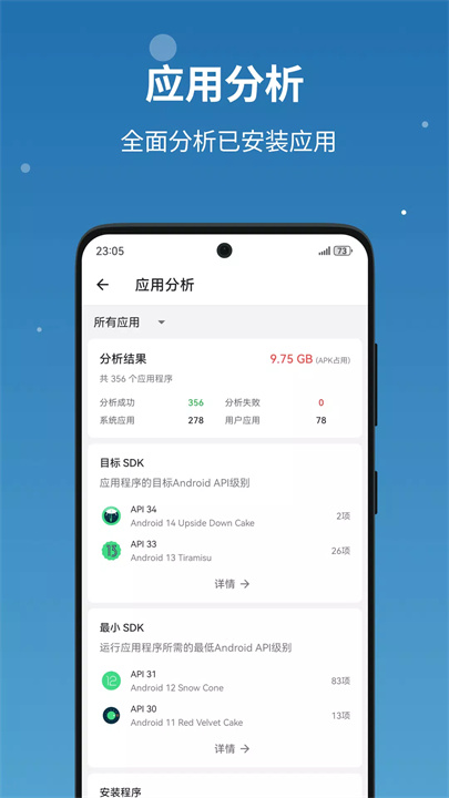 通过流舟文件浏览器,您可以管理本地应用、系统应用及用户应用,并查看应用的详细信息,如权限、签名等。