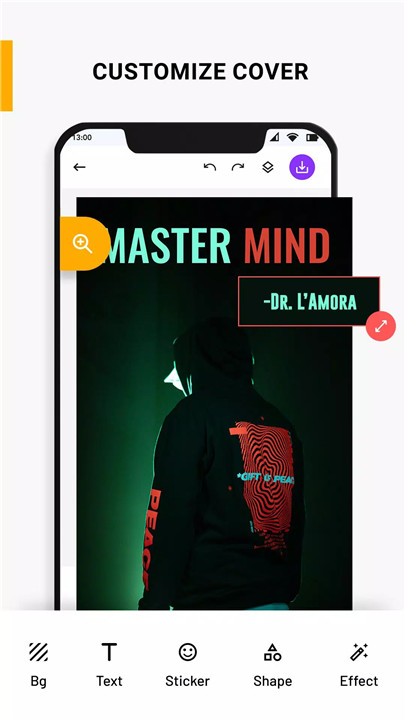 For an added creative touch, incorporate stickers from the app's extensive collection or choose images from your phone's gallery. Experiment with different shapes and effects to make your book cover visually captivating and unique.