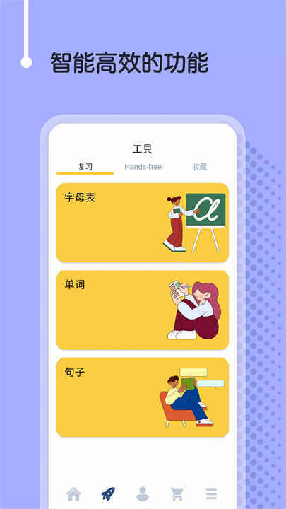 学习方式:通过手绘插图、母语音频和语音识别练习,提高记忆和发音。