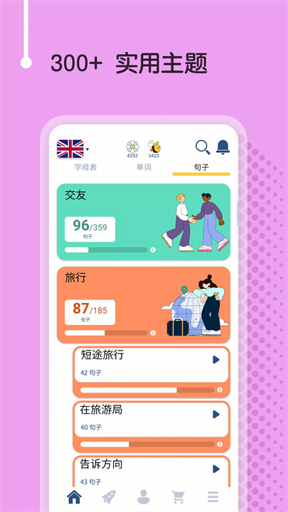 丰富词汇:包含6,000个常用英语单词,按等级和主题分组,确保学习循序渐进。