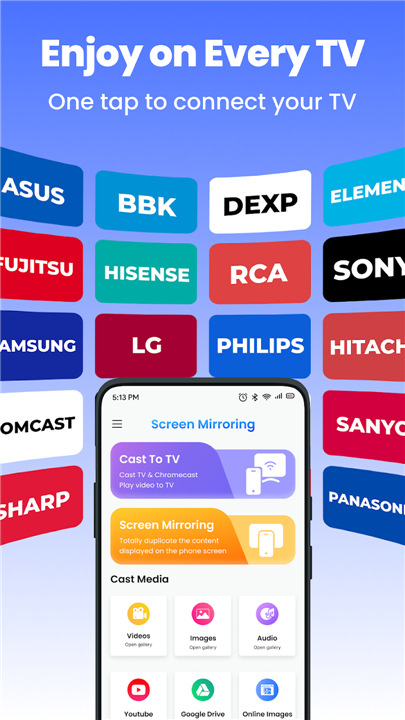 • Web Content: Cast browser videos, cloud files, and more
