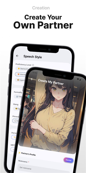 Craft your own language partners by tailoring their language, tone, and personality to enhance your speaking practice across diverse styles and situations.