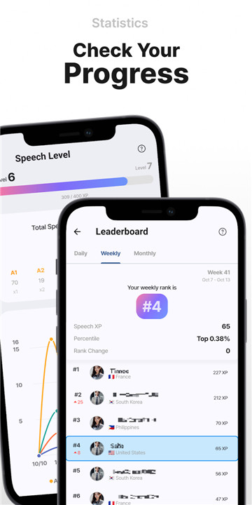 Push your limits by competing with fellow users! Check out daily, weekly, and monthly leaderboards to see who stands out. SpeakEasy provides various statistics to monitor your progress and compare achievements with others.