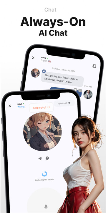 As you interact with your AI partners, you'll gather experience points. Level up to unlock thrilling new features within the app, adding a fun twist to your language learning adventure.