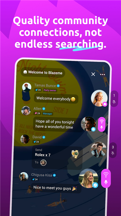 • BlazeMe makes socializing more authentic and effortless by providing a structured environment where connections truly matter.